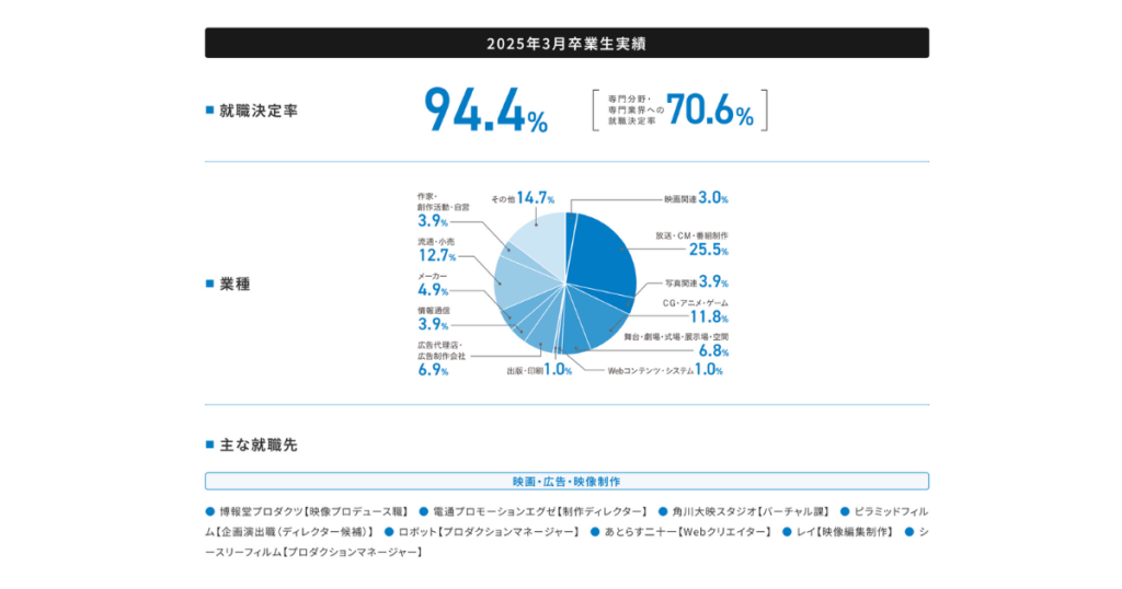 A. 卒業生は、各学部の専門性を活かして多様な業界で活躍しています。例えば、メディア業界、デザイン・建築業界、食品・栄養関連業界、医療・福祉業界、教育業界などが主な就職先です。それぞれの分野でプロフェッショナルとして社会に貢献しており、卒業生の活躍が後輩たちの就職活動にも良い影響を与えています。